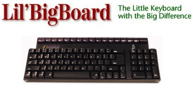 Lil'Big Board gives you a full-function, extended keyboard in a space-saving package. You'll work faster and easier using it's many innovative features including a built-in USB Hub to help reduce cable clutter, user-definable function keys with specially-designed "can't miss" rounded keys, and dual-purpose keys for full-function keyboard capability.